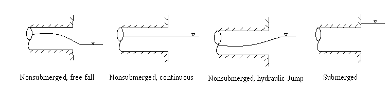 - Outlets designate facilities where flows exit the collection system. These nodes define the discharge end or the most downstream element of a sewer network. The exit condition can be grouped into four cases as shown below.