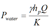 Pwater = water power supplied by pump (KW, hp)