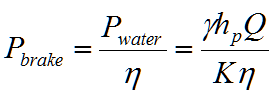 Water power will always be less than the power supplied to the pump shaft, often referred to as the brake power. Brake power is expressed as