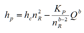 The term hp is more widely referred to as the system head, or total dynamic head, that must be overcome before fluid can be lifted by the pump. Since the magnitude of losses is directly proportional with the flow rate, Equation (17) indicates that for a given discharge, a unique system head is needed to maintain flow. The relationship is referred to as the system equation. Following, description of pump power calculation, pump characteristic curve, pump torque calculation and pump affinity laws is given.