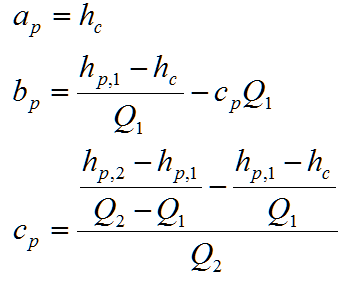 (hp,2, Q2)], the pump curve can be calculated as