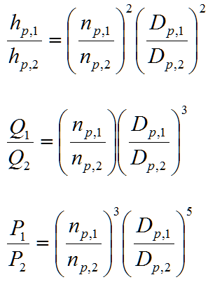 If pump are constructed from impellers and casings that are geometrically similar (same shape but scale to different size), their pump curves will vary in a predictable manner. Similarly, altering the motor speed that is driving a particular pump will also have a predictable effect. The so-called affinity or similarity laws describe the relationship between the pump flow, head, and motor speed. Knowledge of these relationships will accelerate selecting a pump/motor combination for a particular application.