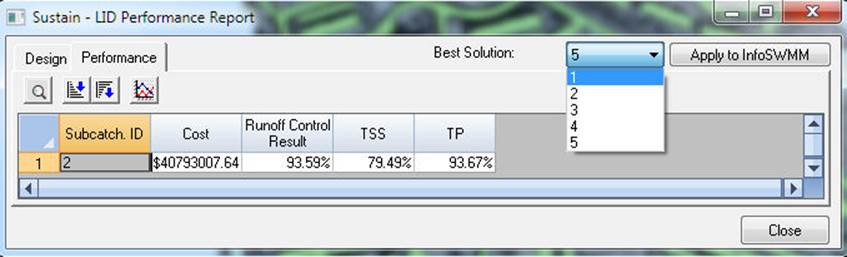 STEP 19: Click on the LID Performance Report to choose a Best Solution to Apply to the InfoSWMM LID Usage Table