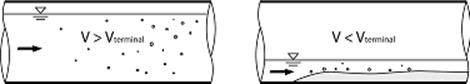 Wastewater flow velocity and sediment transport in sewer systems are interdependent. As the flow increases from zero, flow-induced forces (lift and drag) acting on the sediment particle increase. When these forces exceed the submerged weight of the particle, the sediments start to move. With a further increase in velocity, the particles will be suspended by eddies of fluid turbulence and move downstream with the wastewater. With a subsequent decrease in flow velocity (beyond the limiting or terminal velocity), sediment particles will start to settle by gravity at a rate proportional to their settling velocity. A further increase in flow velocity provides the energy to scour and transport the deposited material along the sewer pipes. This dynamic process continues based on the flow conditions inherent in the sewer system.