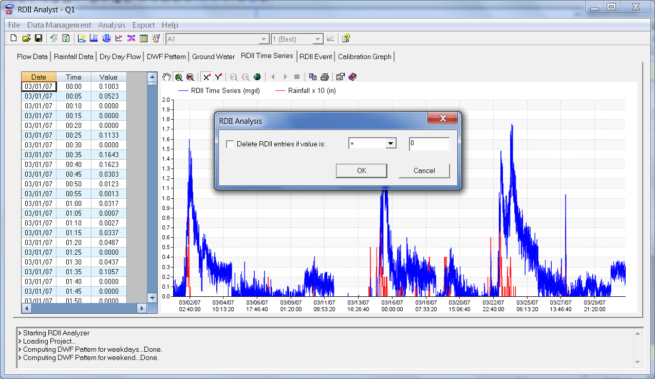 Step 8. Calculate the Wet Weather flow – Flow minus Dry Weather Flow