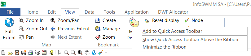 InfoSWMM SA Quick Access Toolbar