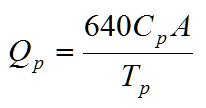 where Qp = peak flow rate of the unit hydrograph, in cfs.