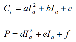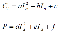 The coefficients a, b, c, d, e, and f are defined in terms of Ia in the following table.