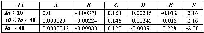 | 10 < Ia ≤ 40 | 0.000023 | -0.00224 | 0.146 | 0.00245 | -0.012 | 2.16 |