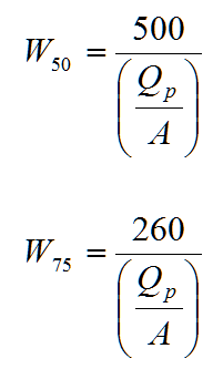 W75 = width of the unit hydrograph at 75% of the peak, in hours.