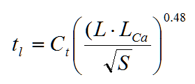 Lag time (tl) of the watershed (catchment), defined as the time from the center of unit storm duration to the peak of the unit hydrograph, is determined as: