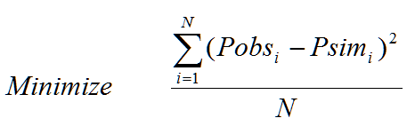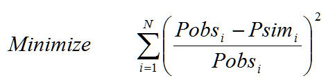 The objective of the optimal calibration problem is to minimize the numerical discrepancy between the observed and predicted values of link flow, link depth, and/or link velocity at various locations in the system. Any of the following five different mathematical objective functions can be used in InfoSWMM && InfoSWMM SA Calibrator.